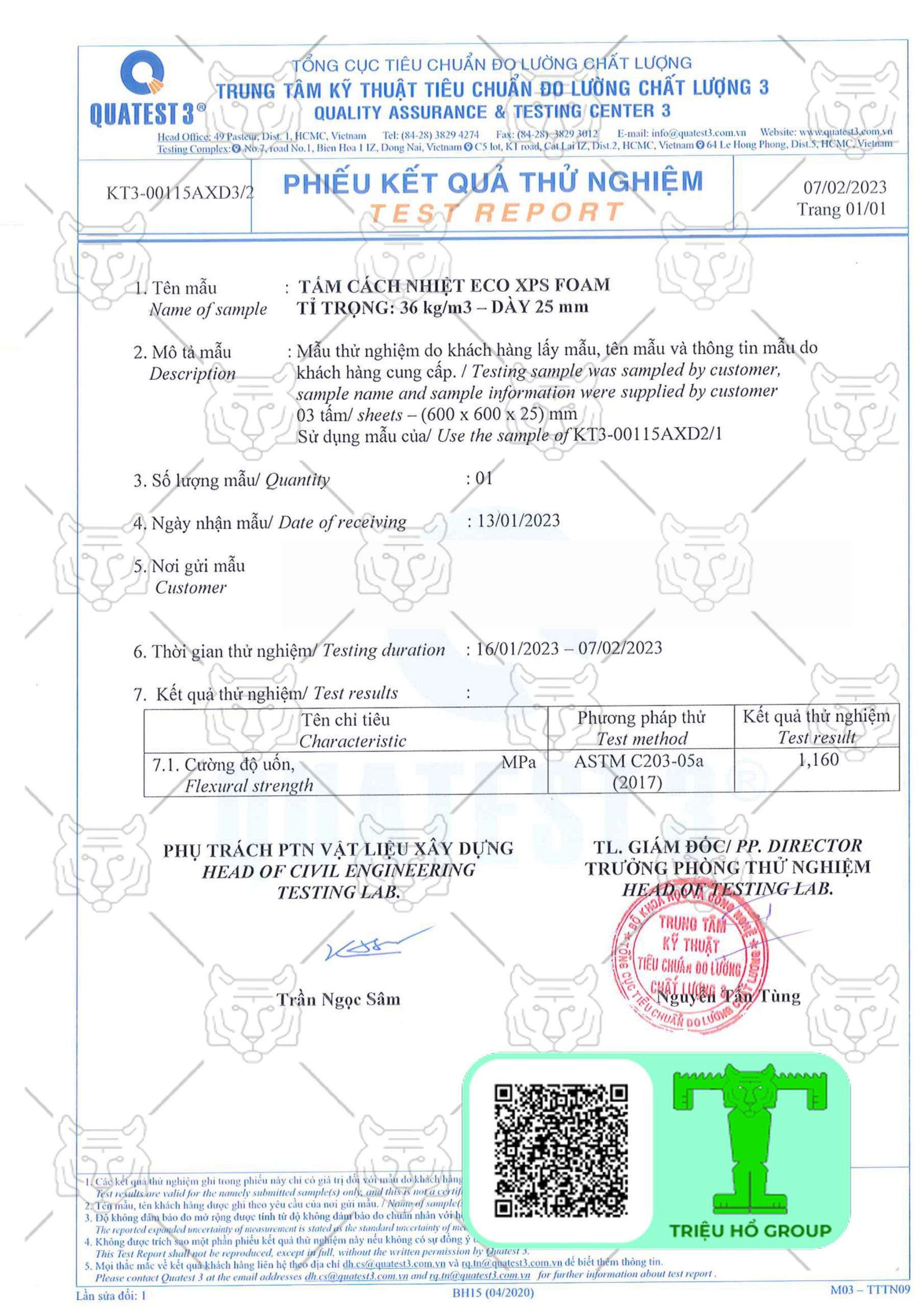 Chứng chỉ đảm bảo chất lượng Tấm XPS Cách Âm Cách Nhiệt