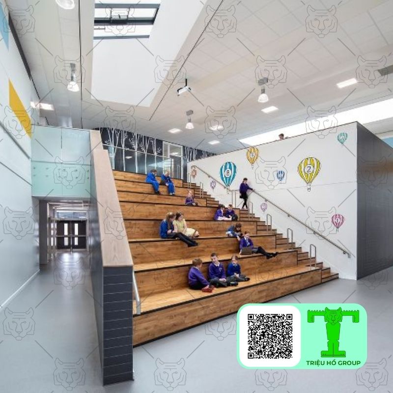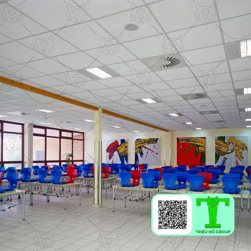 Không gian học tập cần sự yên tĩnh để tăng khả năng tập trung. Tấm trần thả sợi khoáng hỗ trợ giảm tiếng vang, hạn chế nhiễu âm giữa các khu vực. Ngoài ra, tấm thạch cao sợi khoáng khả năng chống cháy cũng góp phần đảm bảo an toàn cho môi trường giáo dục.