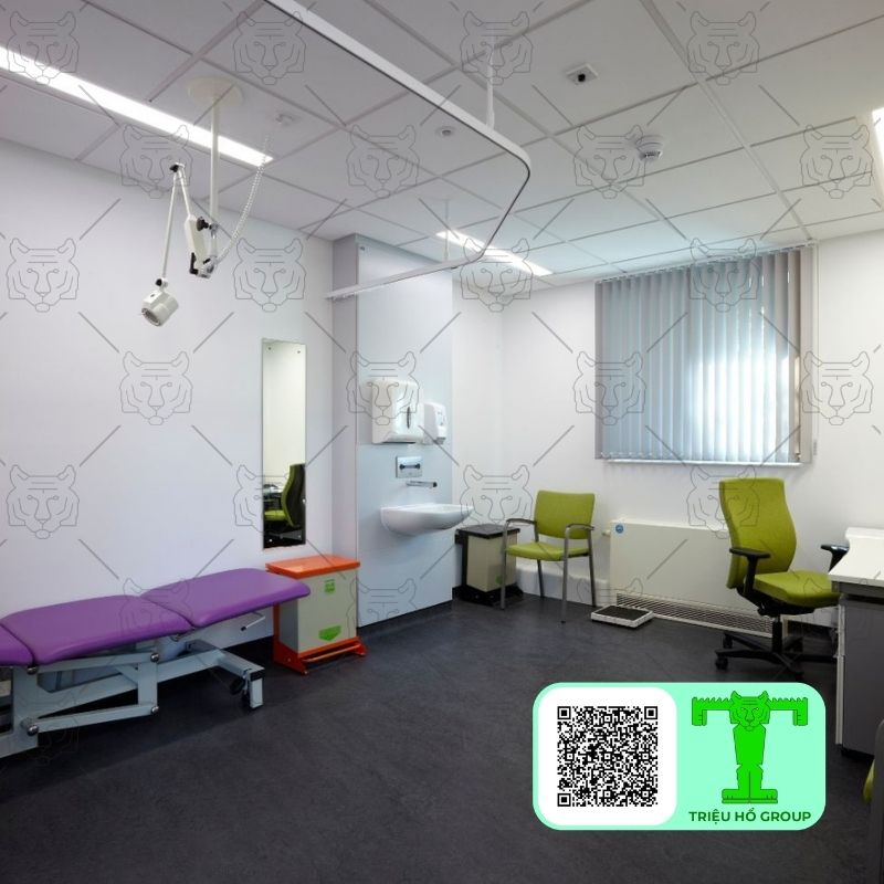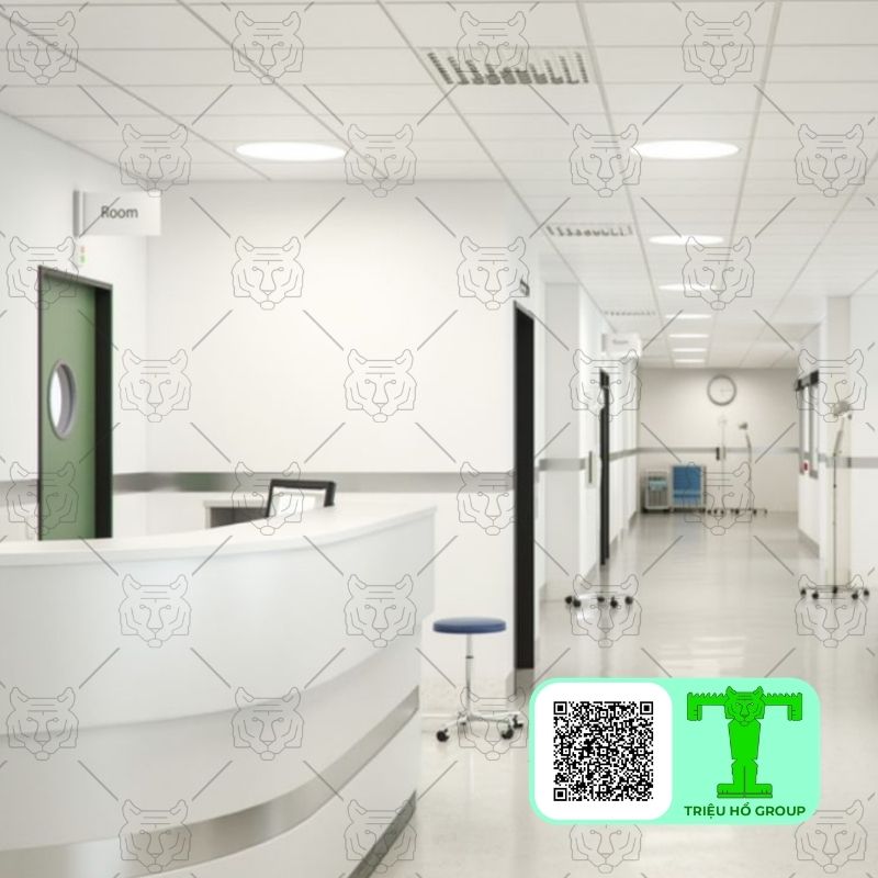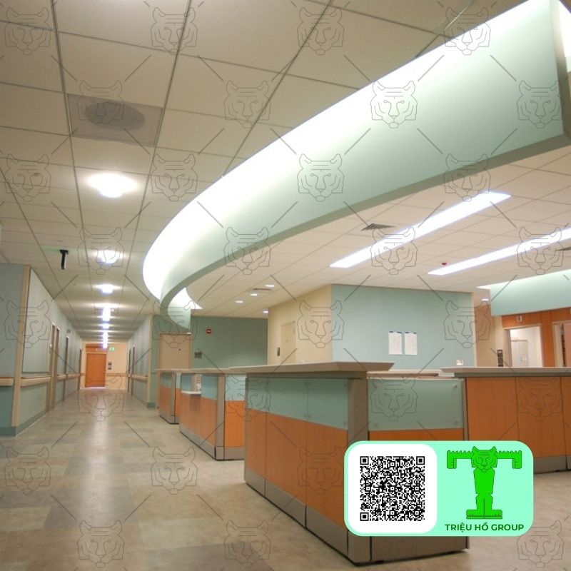 Môi trường y tế cần sự yên tĩnh, sạch sẽ và an toàn. Tấm thạch cao sợi khoáng giúp giảm tiếng ồn, tạo không gian dễ chịu cho bệnh nhân. Đồng thời, tấm trần thạch cao sợi khoáng khả năng chống cháy và dễ bảo trì giúp đáp ứng yêu cầu vận hành liên tục.
