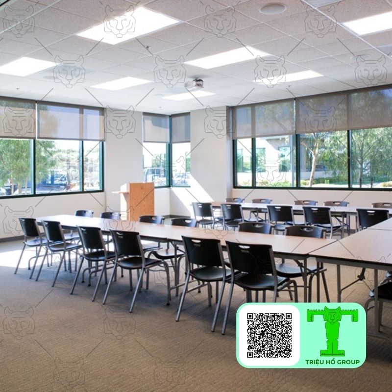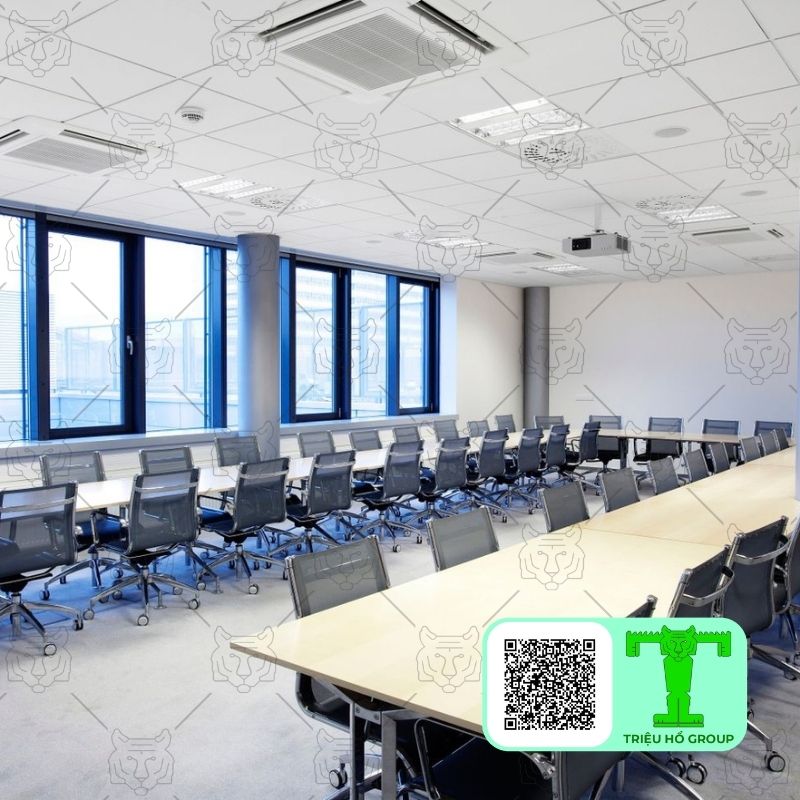 Đây là khu vực yêu cầu cao về chất lượng âm thanh. Tấm trần sợi khoáng tiêu âm giúp kiểm soát âm học, giảm dội âm và cải thiện độ rõ của giọng nói. Nhờ đó, việc trao đổi và trình bày trở nên hiệu quả hơn.