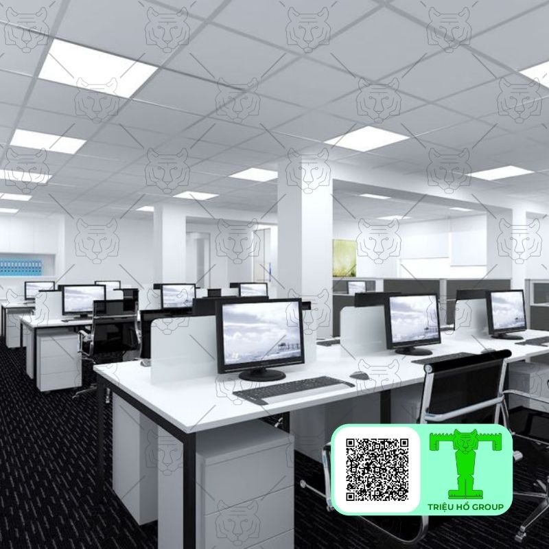 Tấm thạch cao sợi khoáng giúp giảm tiếng ồn và hạn chế âm thanh vang trong không gian kín. Nhờ khả năng tiêu âm tốt, môi trường làm việc trở nên yên tĩnh và tập trung hơn. Bề mặt sáng còn giúp tăng độ phản xạ ánh sáng, tạo cảm giác chuyên nghiệp và hiện đại.