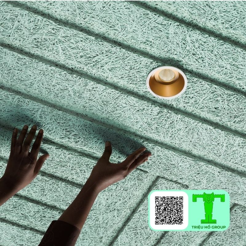 Cấu trúc sợi gỗ đan xen tạo nhiều khe rỗng giúp hấp thụ và tán xạ sóng âm hiệu quả, đặc biệt phù hợp cho các không gian trần cao như nhà hàng, sảnh khách sạn và hội trường.