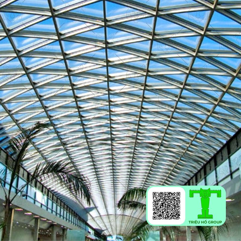 Ứng dụng | Phù hợp với hầu hết các công trình từ dân dụng đến công nghiệp, đặc biệt là những nơi cần sự linh hoạt trong thiết kế và chống chịu thời tiết khắc nghiệt. | Thích hợp cho các công trình có yêu cầu ánh sáng tự nhiên trong suốt và bền vững như mái nhà kính, nhưng khó sử dụng cho các công trình có yêu cầu thiết kế linh hoạt. |