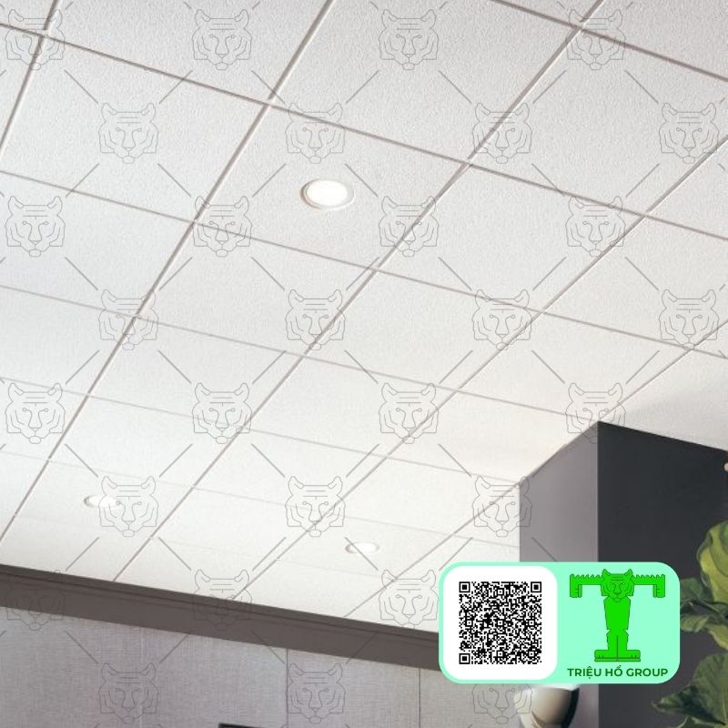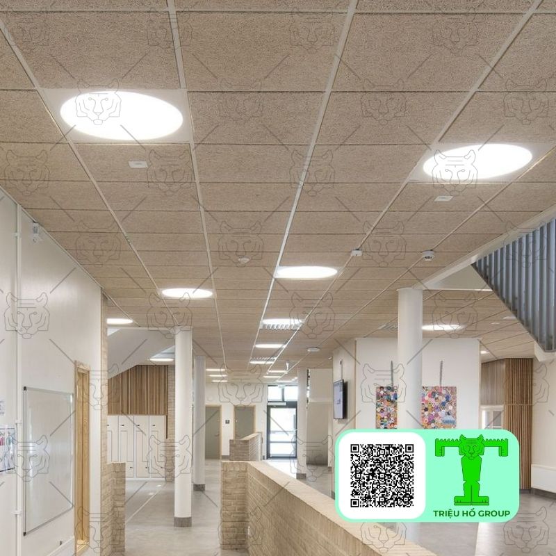 Tấm trần sợi khoáng (Mineral Fiber Ceiling) là dòng trần thả chuyên dùng cho các không gian cần yên tĩnh và gọn gàng. Sản phẩm được tạo từ bông khoáng sinh học, kết hợp bột đá và đất sét, nên vừa nhẹ vừa ổn định khi sử dụng lâu dài. Điểm nổi bật của loại trần này là khả năng giảm vang, hạn chế tiếng ồn khá hiệu quả, đồng thời hỗ trợ cách nhiệt và chống cháy. Nhờ đó, trần sợi khoáng thường được ứng dụng nhiều trong văn phòng, trường học, bệnh viện hay trung tâm thương mại, nơi cần không gian thoải mái và dễ chịu hơn.