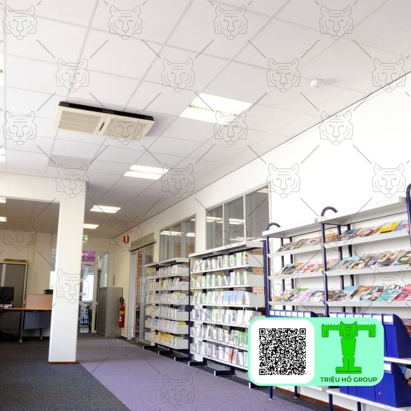 Các không gian lớn như showroom, trung tâm mua sắm thường có trần cao và đông người. Điều này dễ gây vang âm nếu không xử lý tốt. Tấm trần sợi khoáng vừa giúp giảm ồn, vừa giữ được sự gọn gàng, hiện đại. Nhờ đó, không gian vẫn thoáng và chuyên nghiệp mà không bị “ồn nền”.