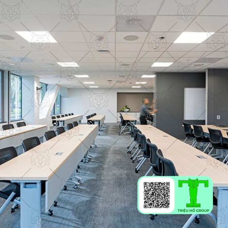 Không gian mở thường bị nhiễu âm, gây mất tập trung. Trần sợi khoáng giúp giảm ồn hiệu quả, tạo môi trường làm việc dễ chịu và chuyên nghiệp hơn.