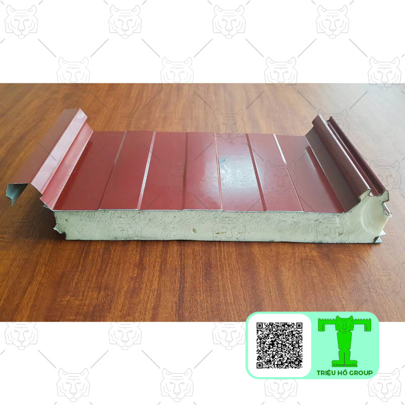 - Nằm ở giữa là lớp lõi cách nhiệt bằng vật liệu Polyurethane (PU), có độ dày dao động từ 10mm đến 50mm. Lớp PU này là chìa khóa mang lại hiệu quả vượt trội trong việc ngăn nhiệt và giảm tiếng ồn, đảm bảo không gian bên trong luôn mát mẻ vào mùa hè và ấm áp vào mùa đông.